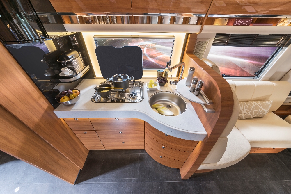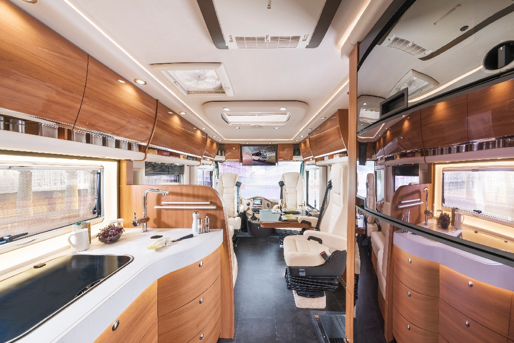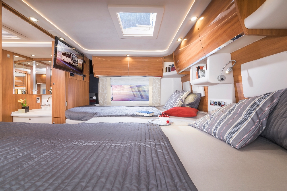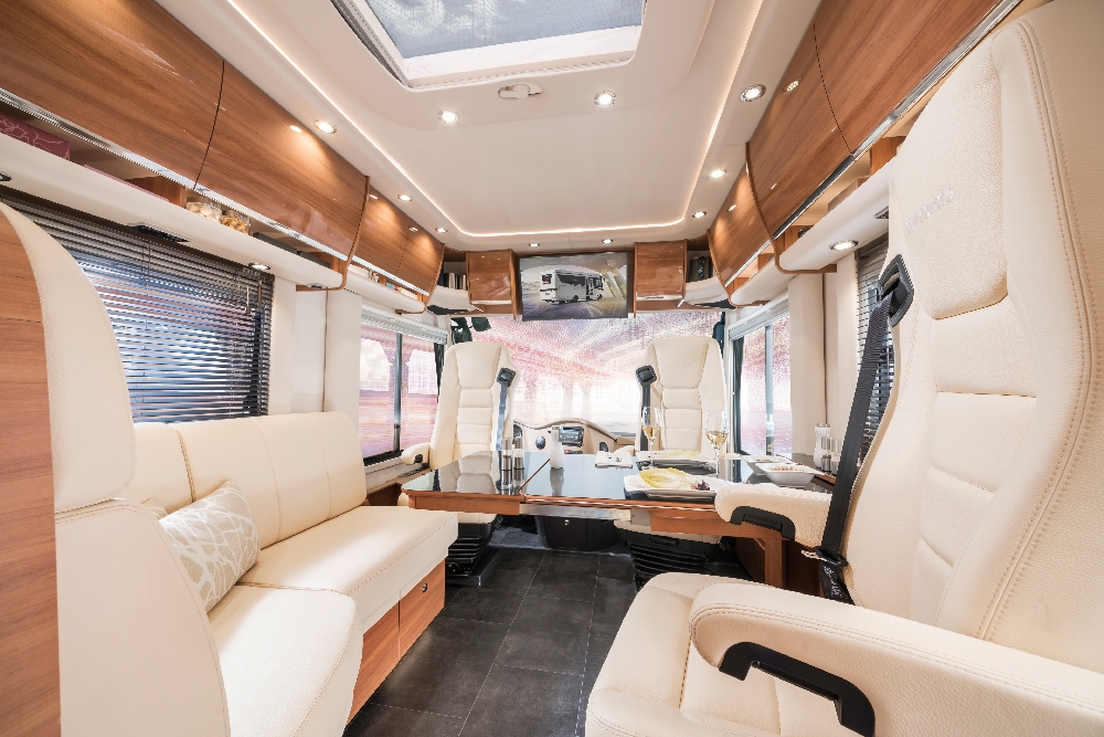 In addition to the well-known luxurious features of the standard Charisma models, this special edition includes optional extras worth around 70,000 euros. Apart from the new chassis, these include vehicle levelling and navigation systems along with a roof-mounted air conditioner and high-quality leather upholstery in bi-colour Coco Vanilla. There are also numerous other features.