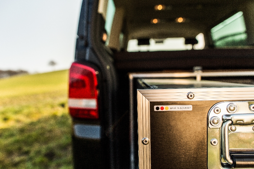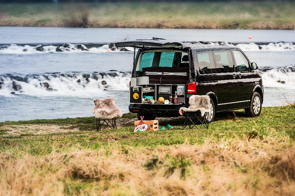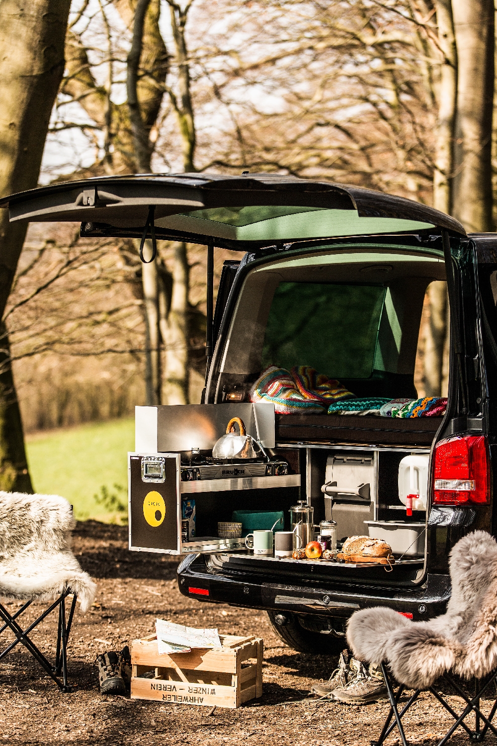 The BusBox kitchen from Ququq is an ideal supplement for buses which already have a sleeping area – e.g. in the folding lifting roof – or which are equipped with a roof tent. The kitchen box turns the vehicle into a fully-fledged motorhome in no time at all, because it is simply placed in the boot, secured with lashing straps, and the compact, everyday camper is ready for the journey.