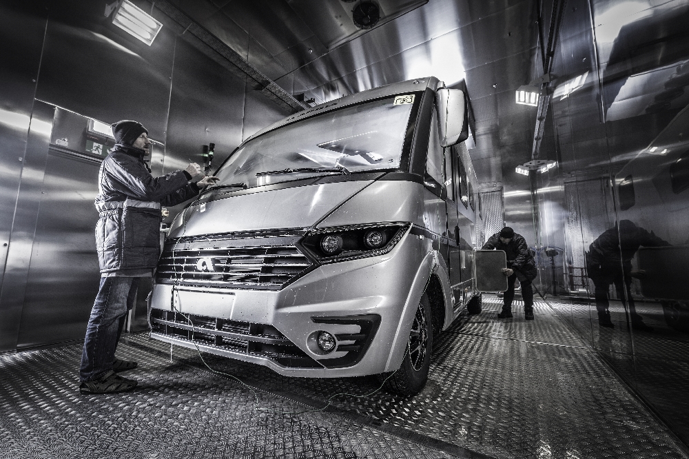 There are 5 models (in SP/SL/DF/DK/SC layouts) in four lengths (5,9m; 6,7m; 6,9m and 7,4m) with the choice of having the front pull-down bed or not, so in total up-to 9 available layouts in total. These motorhomes are all super spacious, with 210cm ceiling height and flexible open space layouts and large panoramic windows.